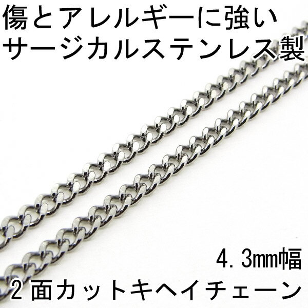 喜平ネックレス ステンレス キヘイチェーン 金属アレルギーに優しい 2面カット 4.3mm 長さ50cm サージカルステンレス に サージカルステンレス fourm クリスマス 母の日 レディース メンズ 男性 女性 ラッピング 包装 袋 誕生日 プレゼント ケース 箱 華奢 大きいサ